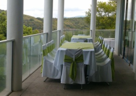 mesa redonda con cubresillas